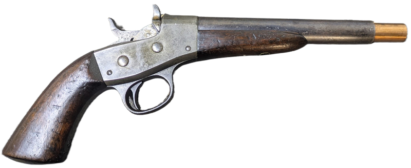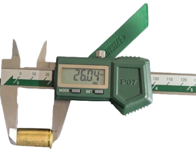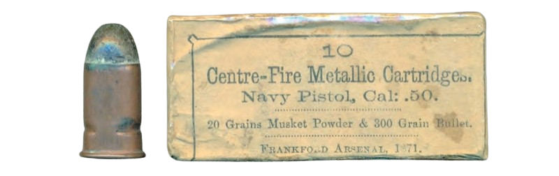 Vyrobit náboj do této pistole není nic složitého. Nábojnice použijeme zakrácené 50-70 GOVERNMENT nebo 56-50 Spencer. Cena obou nábojnic je podobná, a je potřeba je zakrátit nejméně na celkovou délku 26 mm. Zdroje na internetu sice uvádějí 22 -23 mm ale do mé pistole se vejde nábojnice o celkové délce 26mm.
